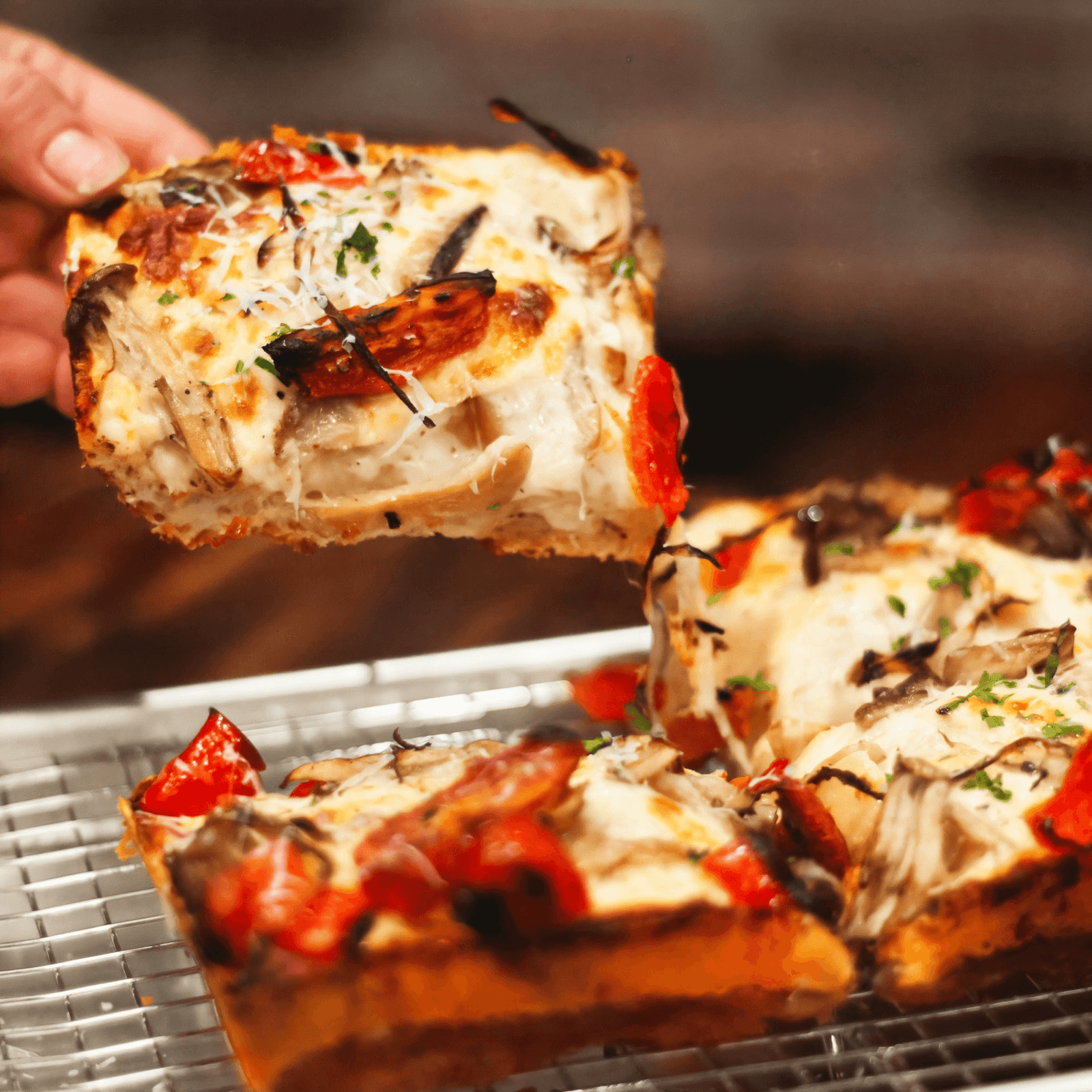 Our long-fermented dough is made with care, giving each pizza a crispy finish and full flavor. From pan pepperoni to classic cheese, every pie is cooked in a wood-fired oven. You’ll taste the difference in every bite. Quality takes time, and we make sure every pizza is worth it.